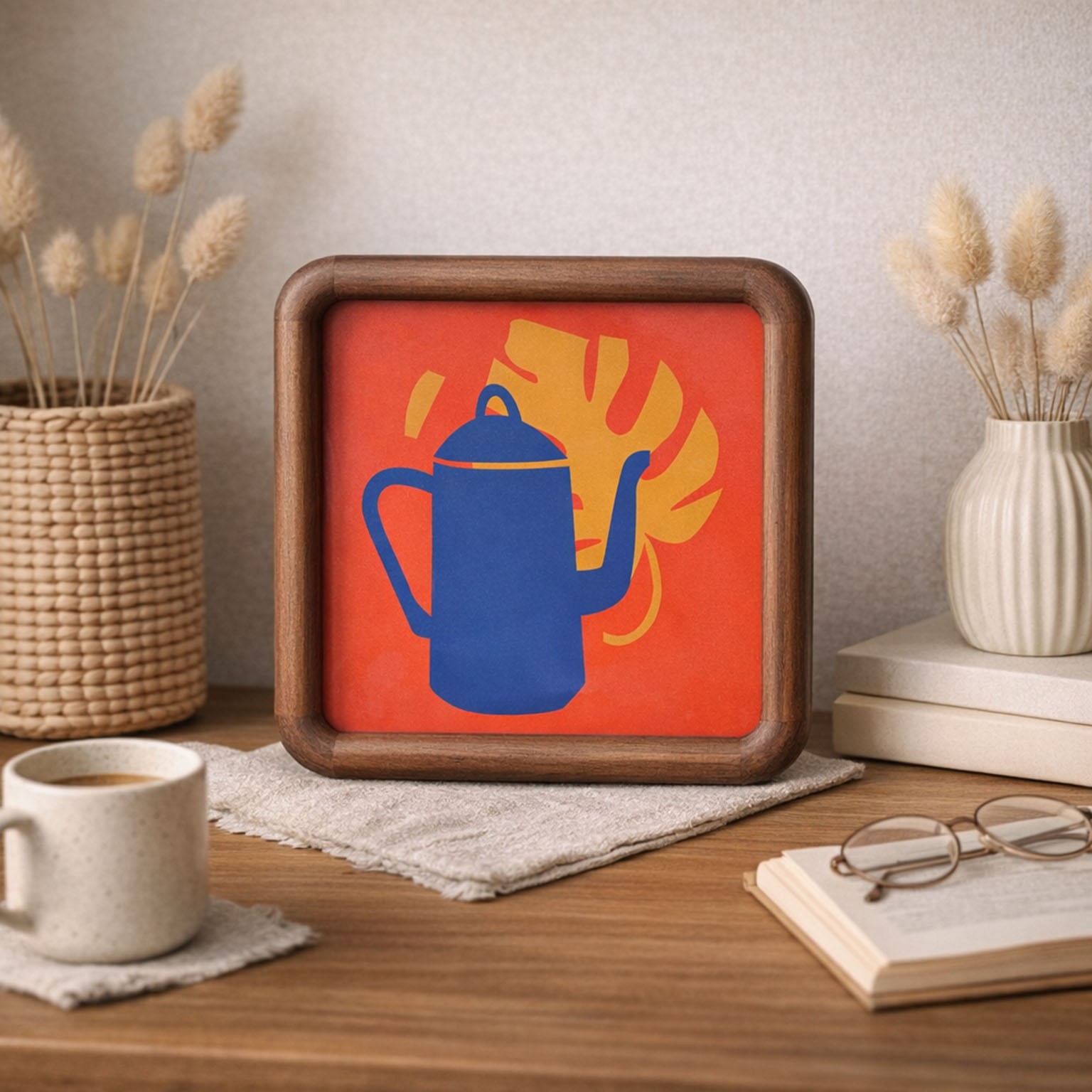 Its modern design, featuring a warm brown finish, enhances photographs, artwork, or decorative prints.