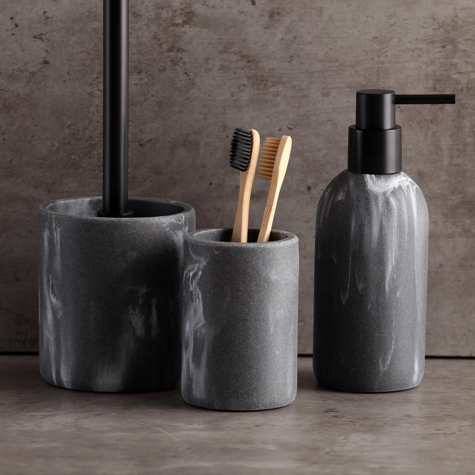 Enhance bathroom aesthetics with the Monza Stone Grey Toilet Brush Holder, crafted from durable resin.