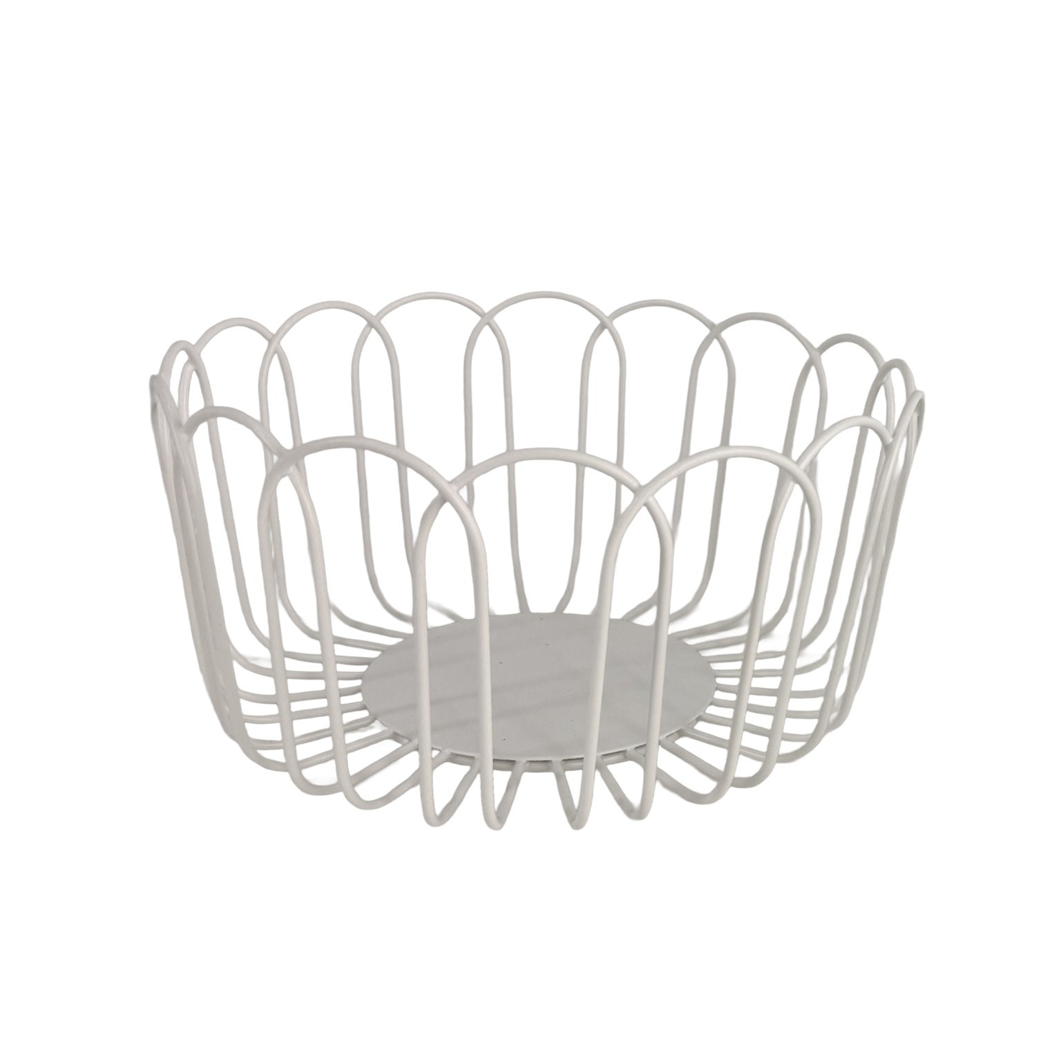 Enhance kitchen and dining spaces with the White Ring Fruit Basket, crafted from durable metal with a sleek white finish.