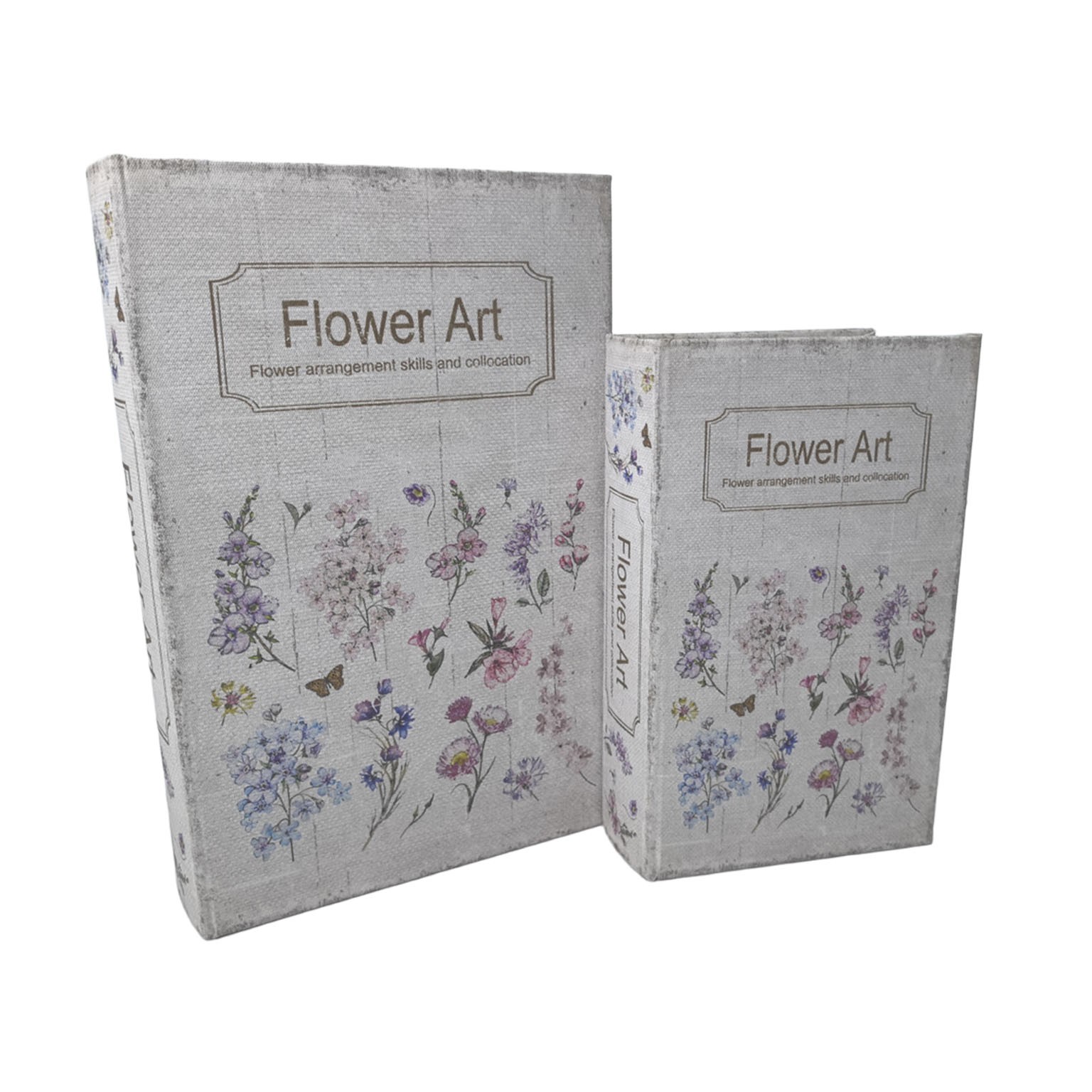 Measuring 7 cm in height, 18 cm in width, and 27 cm in length, these books feature soft, neutral tones adorned with charming floral illustrations, embodying a vintage aesthetic.