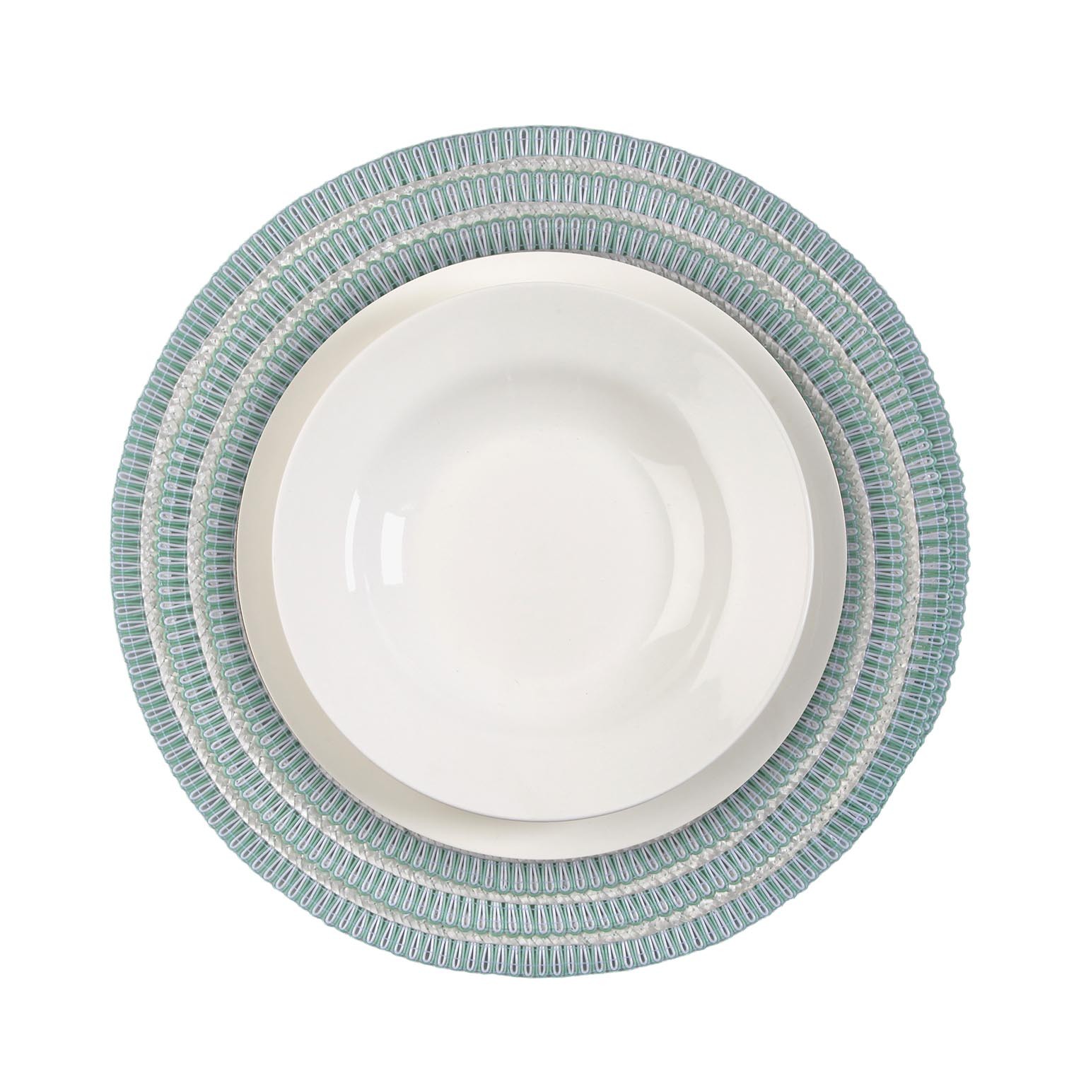 Enhance dining experiences with the blue and white round placemat, a stylish addition to any table setting.