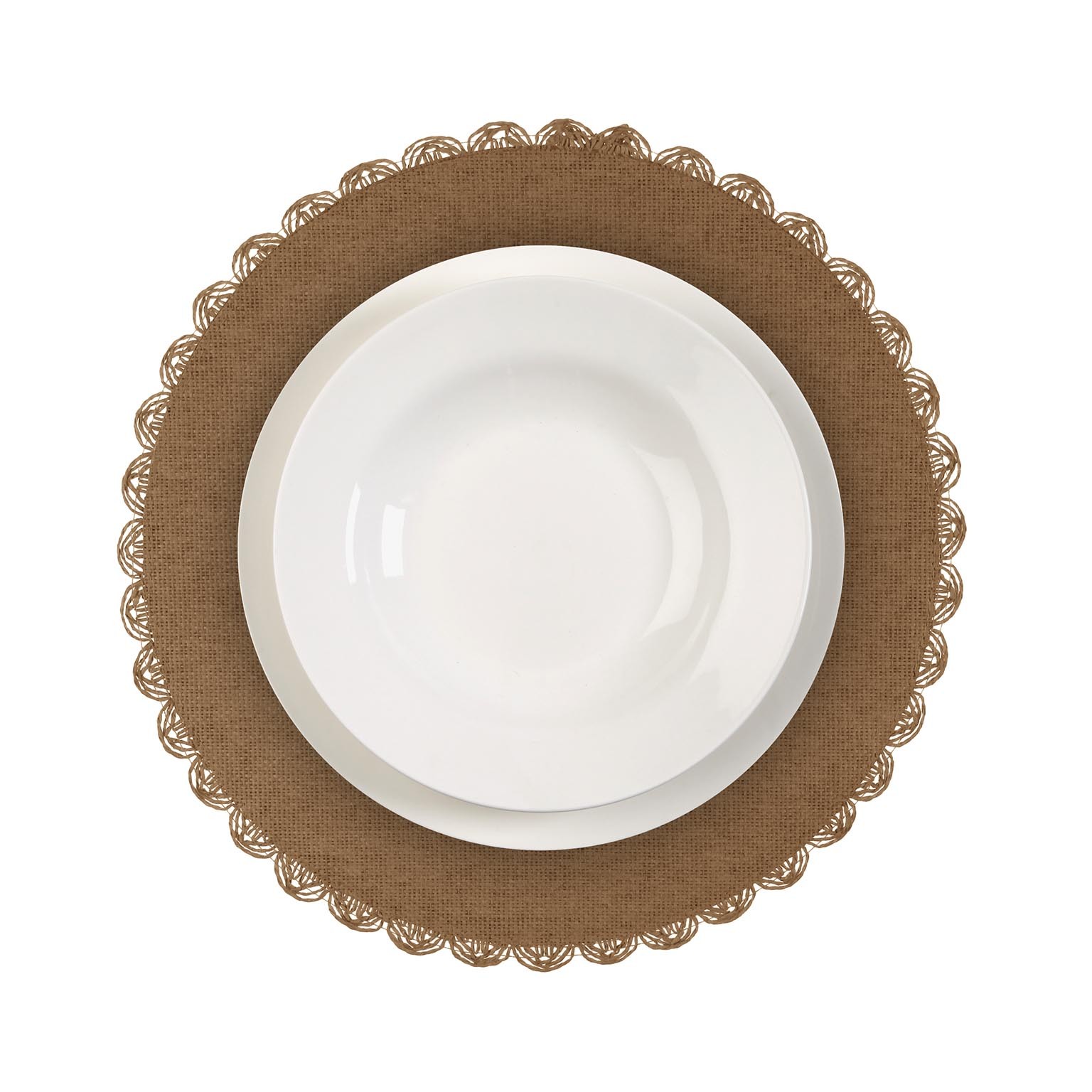 Enhance dining experiences with the Brown Round Paper Placemat, a versatile addition to any table setting.