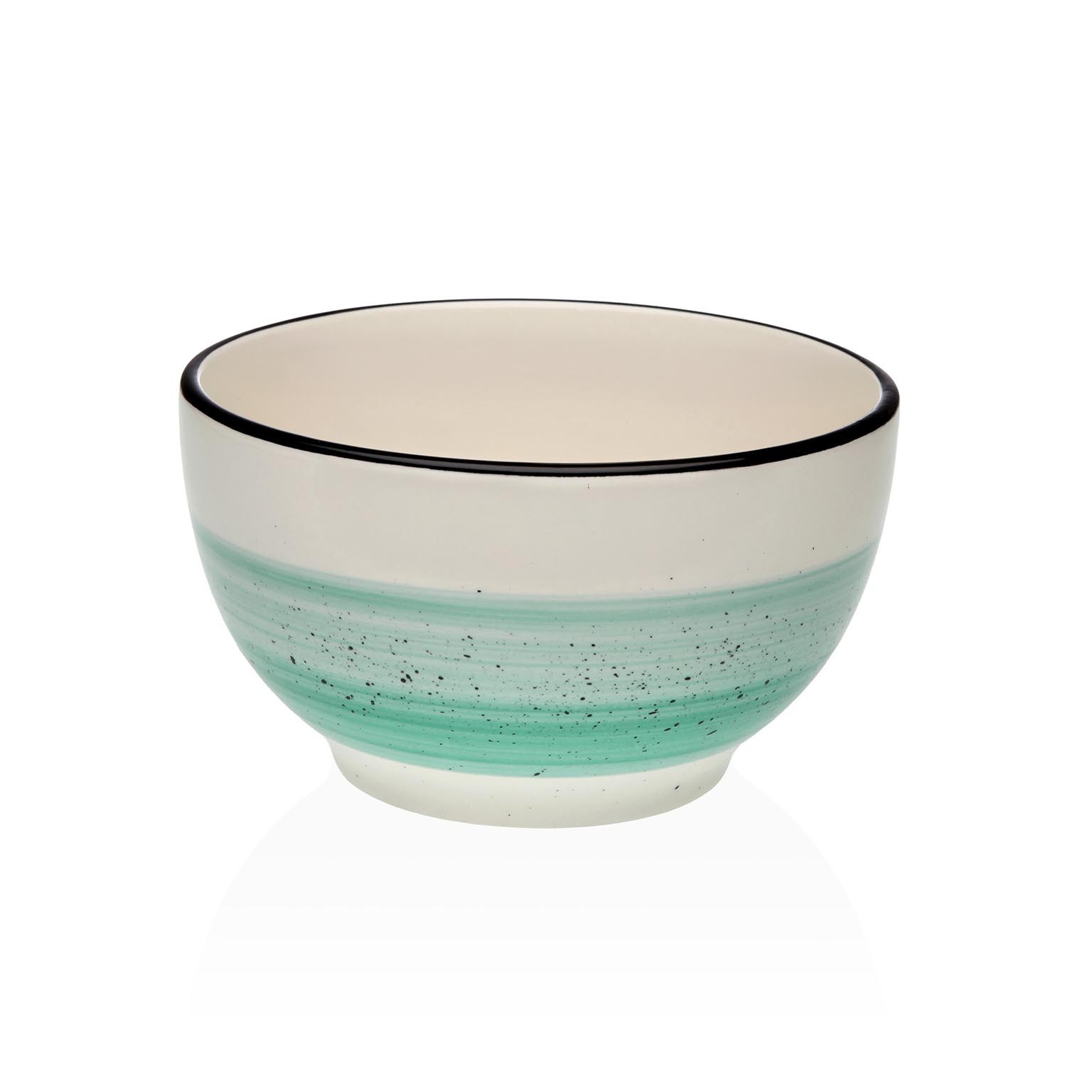 Crafted from durable dolomite, this bowl features a soft morgan green gradient exterior with a cream interior and elegant black rim detailing.