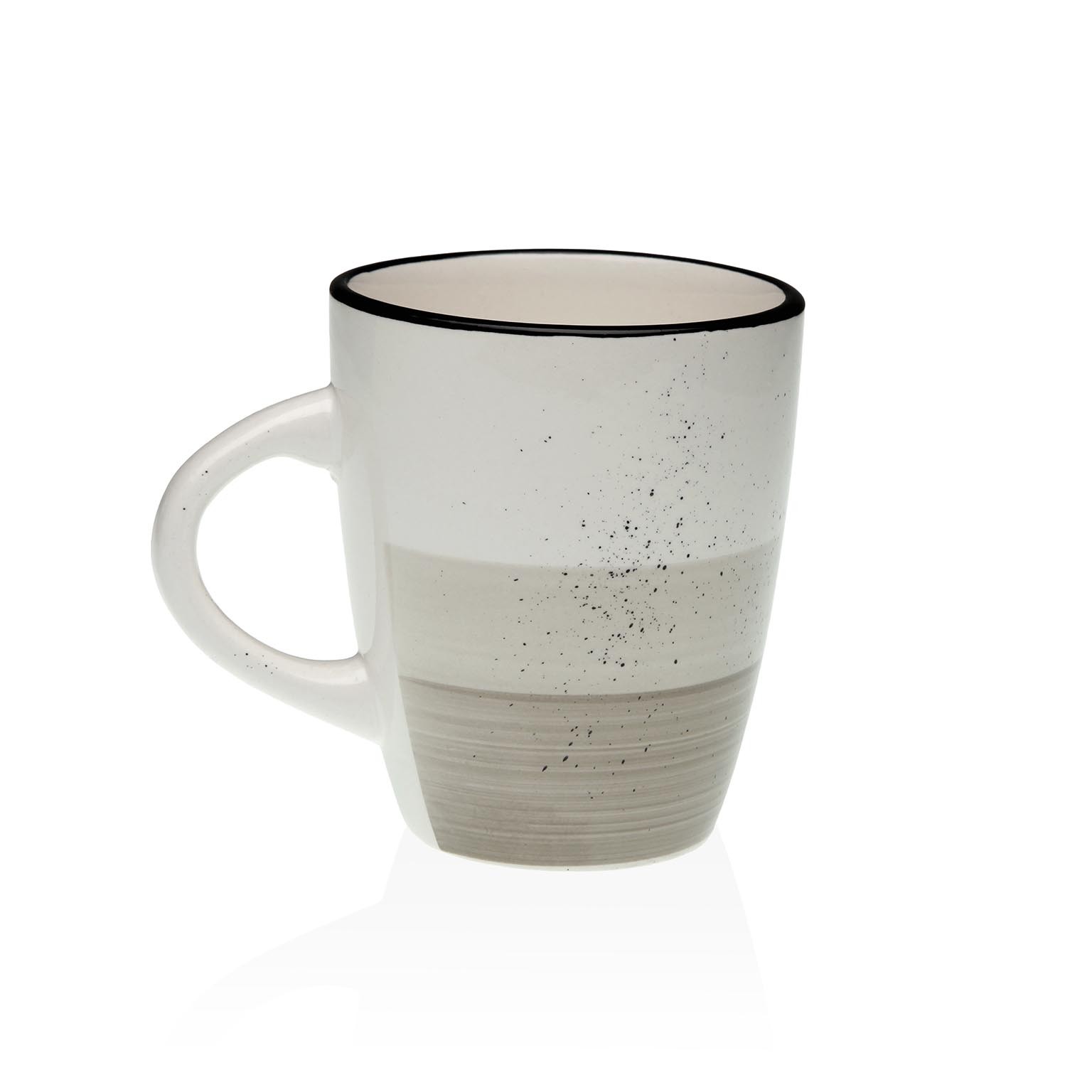 Crafted from durable dolomite, this mug features a modern minimalist design with a gradient grey finish and a striking black rim.