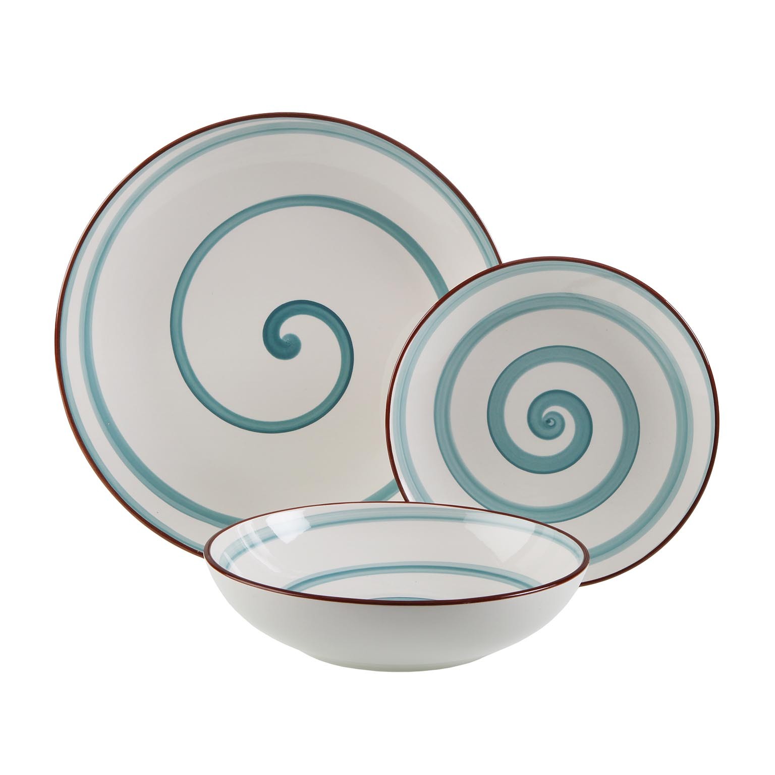 Elevate dining experiences with the 18-piece Enid Blue Dinner Set, crafted from durable dolomite.