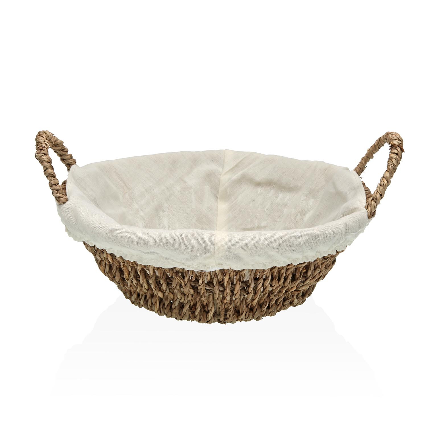 Enhance bathroom organization with this round basket, crafted from natural seagrass.