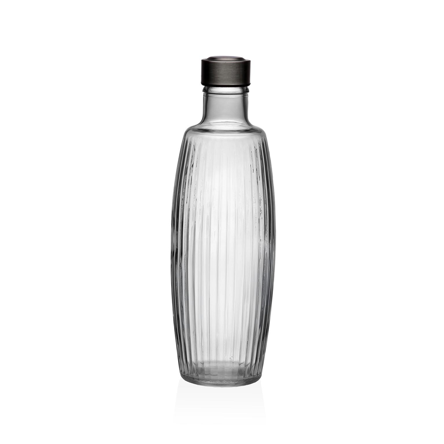Crafted from durable glass with a sleek stainless steel cap, this bottle stands at 29,5 cm tall and measures 9,5 cm in width and length.