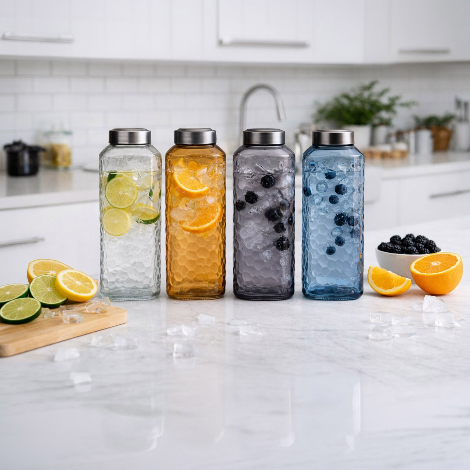 Introducing the Grey Glass Bottle (1,3L), a modern addition to any kitchenware collection.