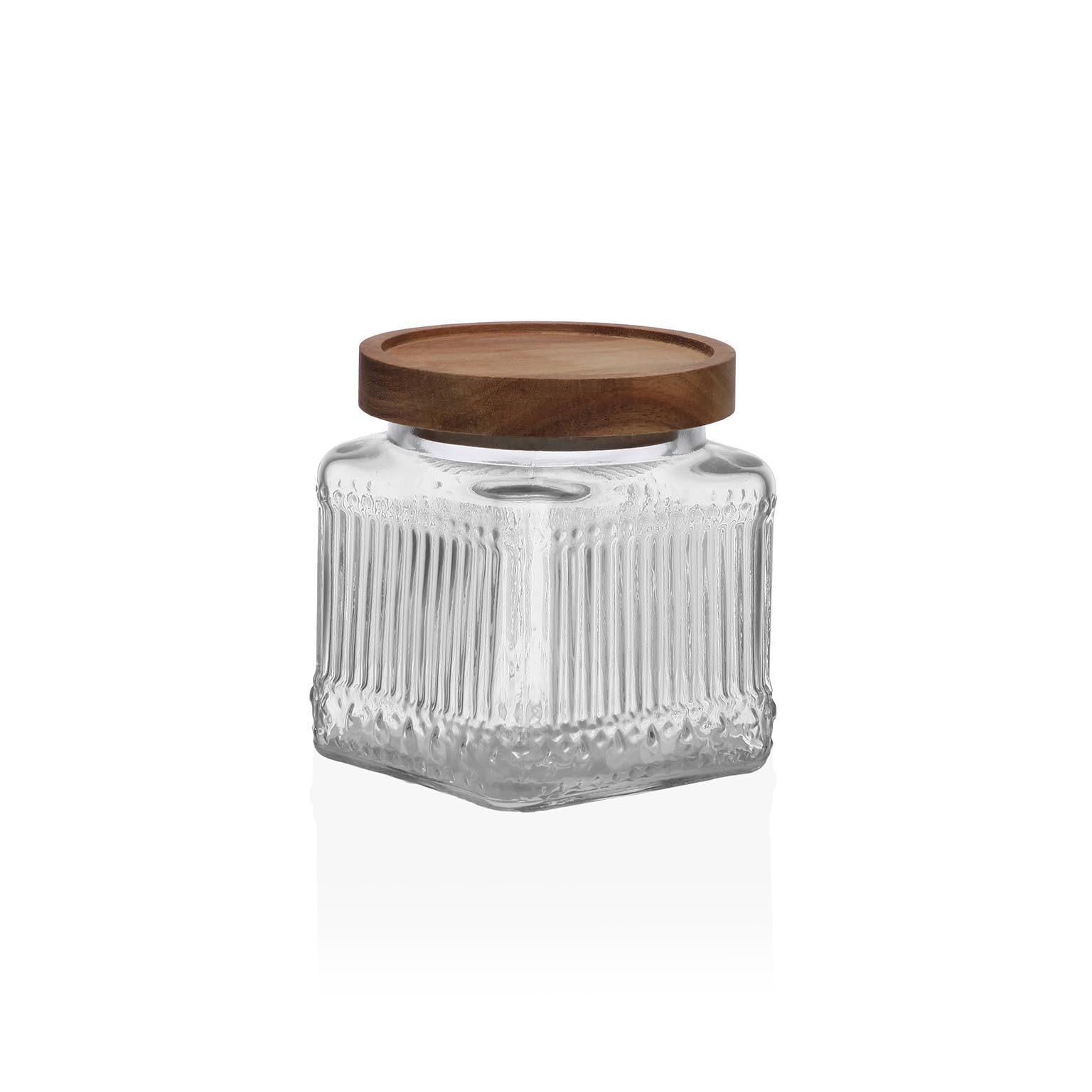 Crafted from durable glass and topped with a natural acacia wood lid, this jar combines functionality with a rustic aesthetic.