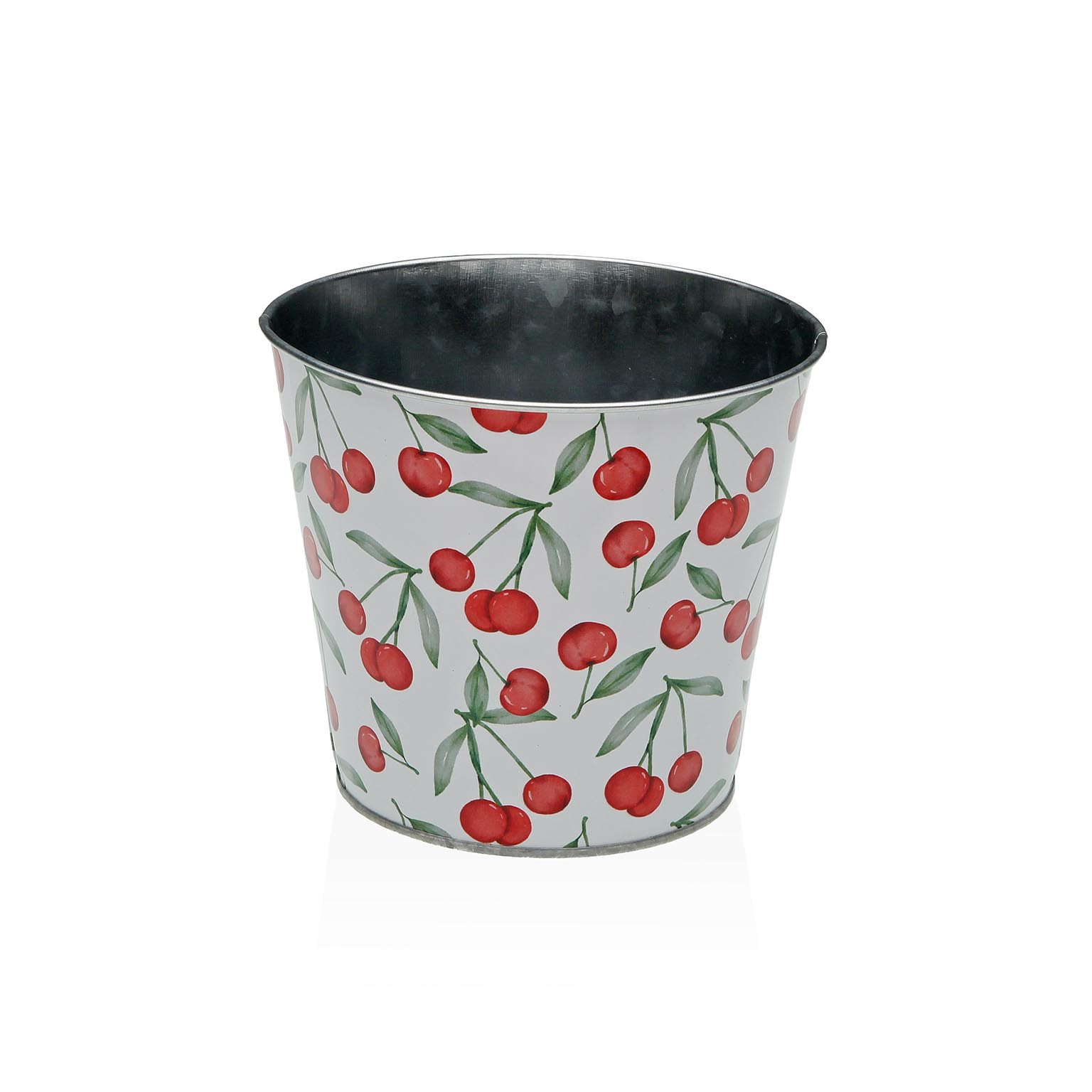 Enhance home decor with the Small Metallic Cherries Pot, a charming flowerpot crafted from durable metal.