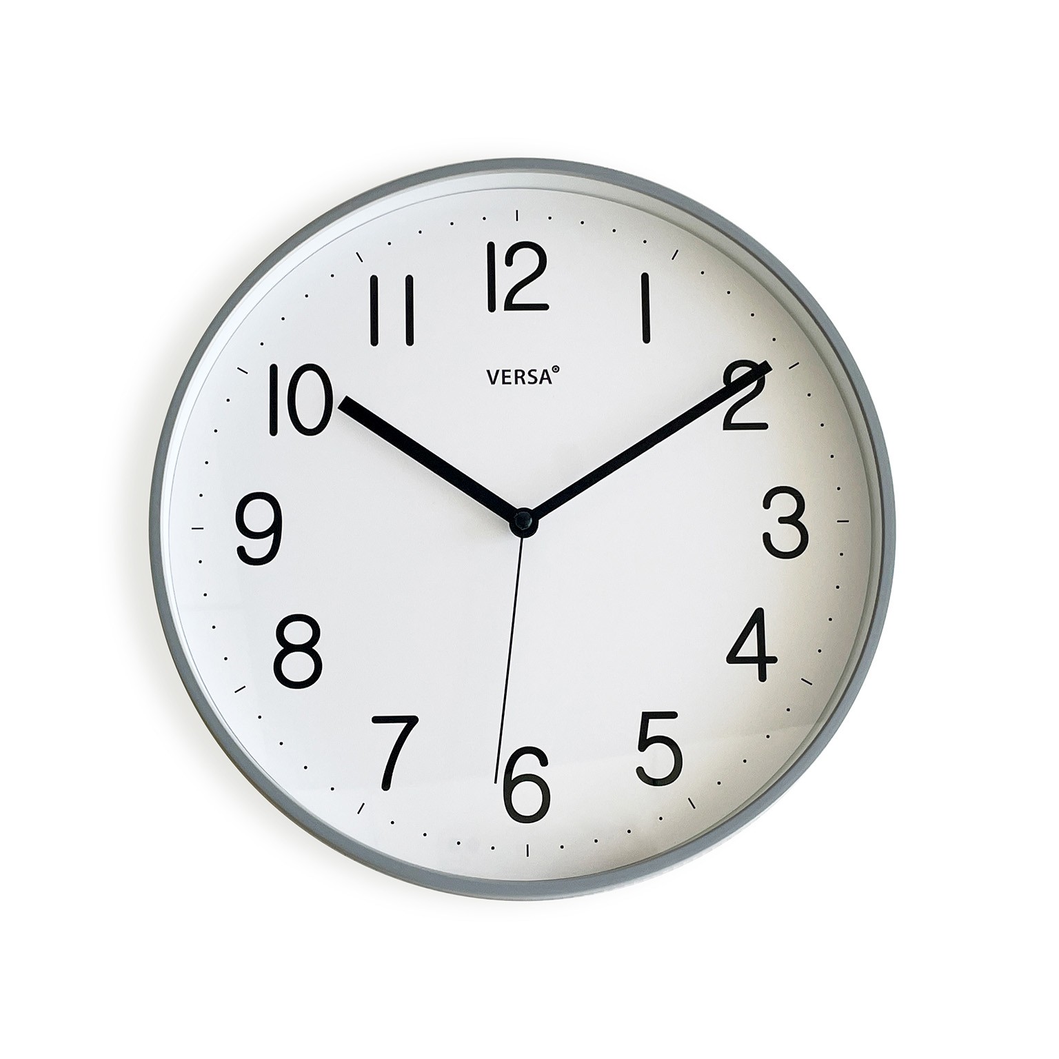 Its neutral grey and white palette, complemented by black numbers and hands, seamlessly integrates with various interior designs, enhancing modern decor effortlessly.