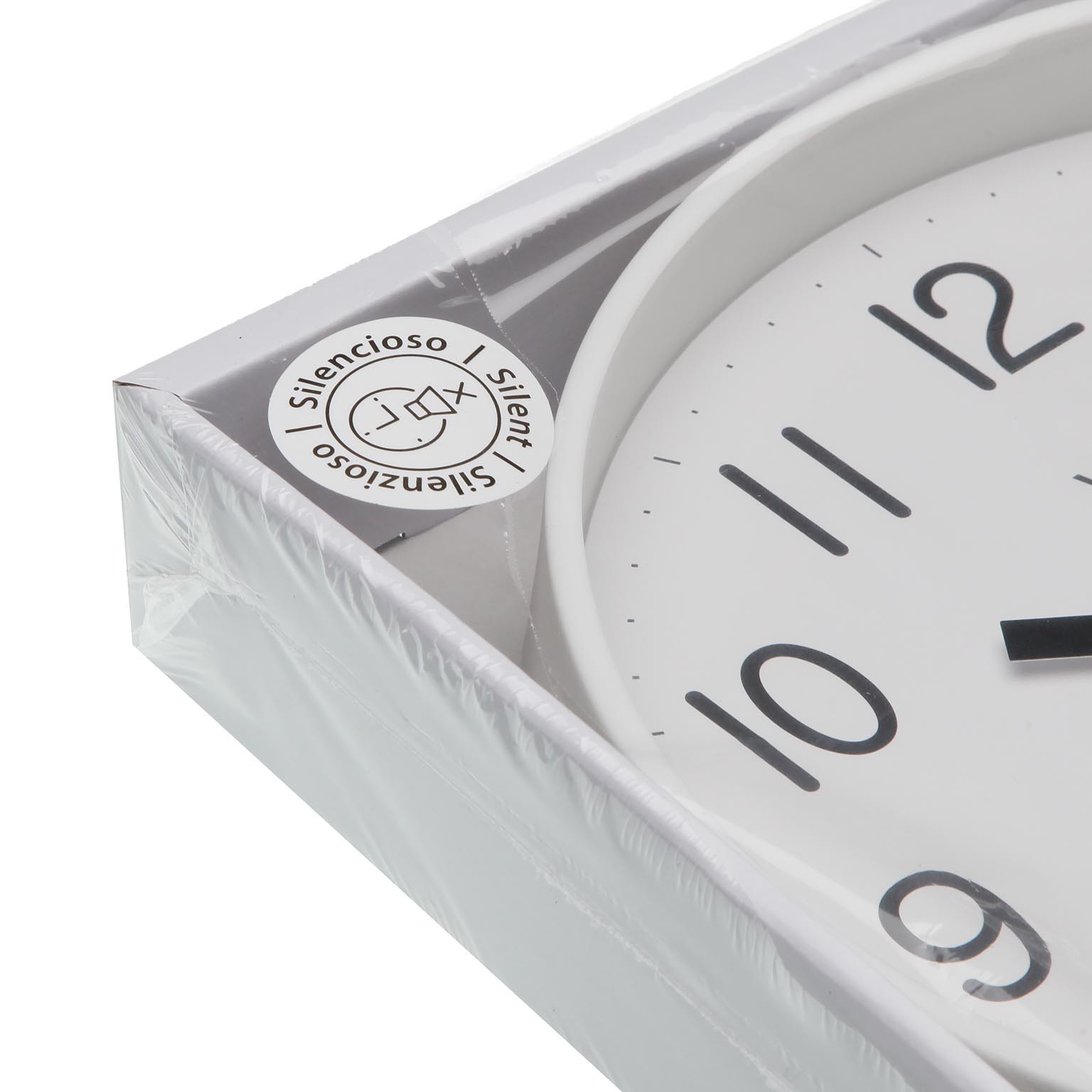 Enhance any kitchen or living space with this modern white wall clock, measuring 25cm in diameter.