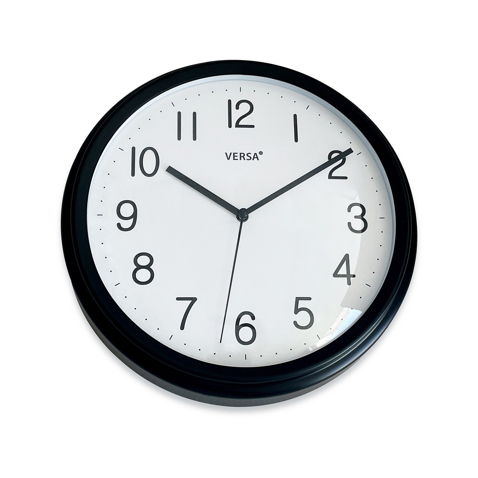 Enhance any kitchen or living space with this modern 26cm black wall clock, crafted from durable MDF wood and plastic.