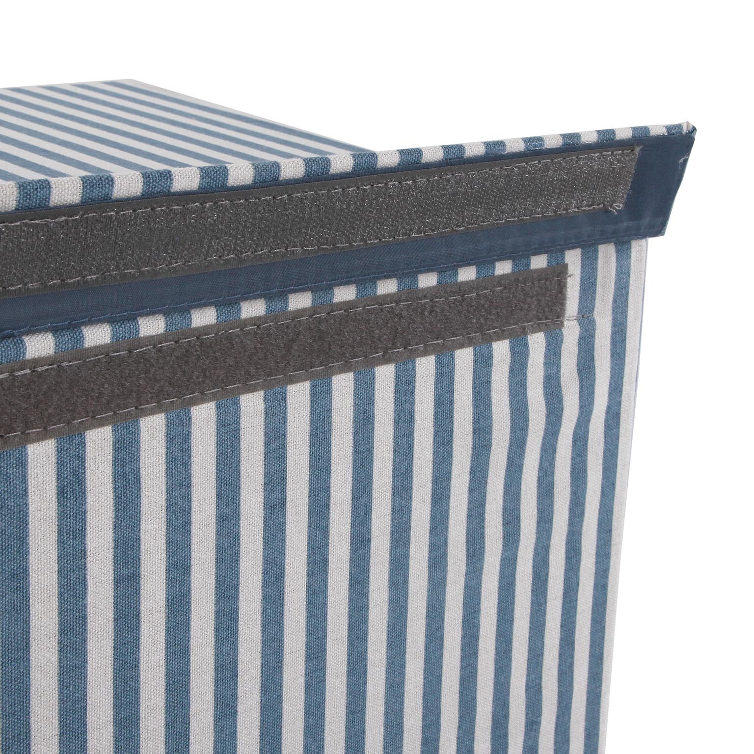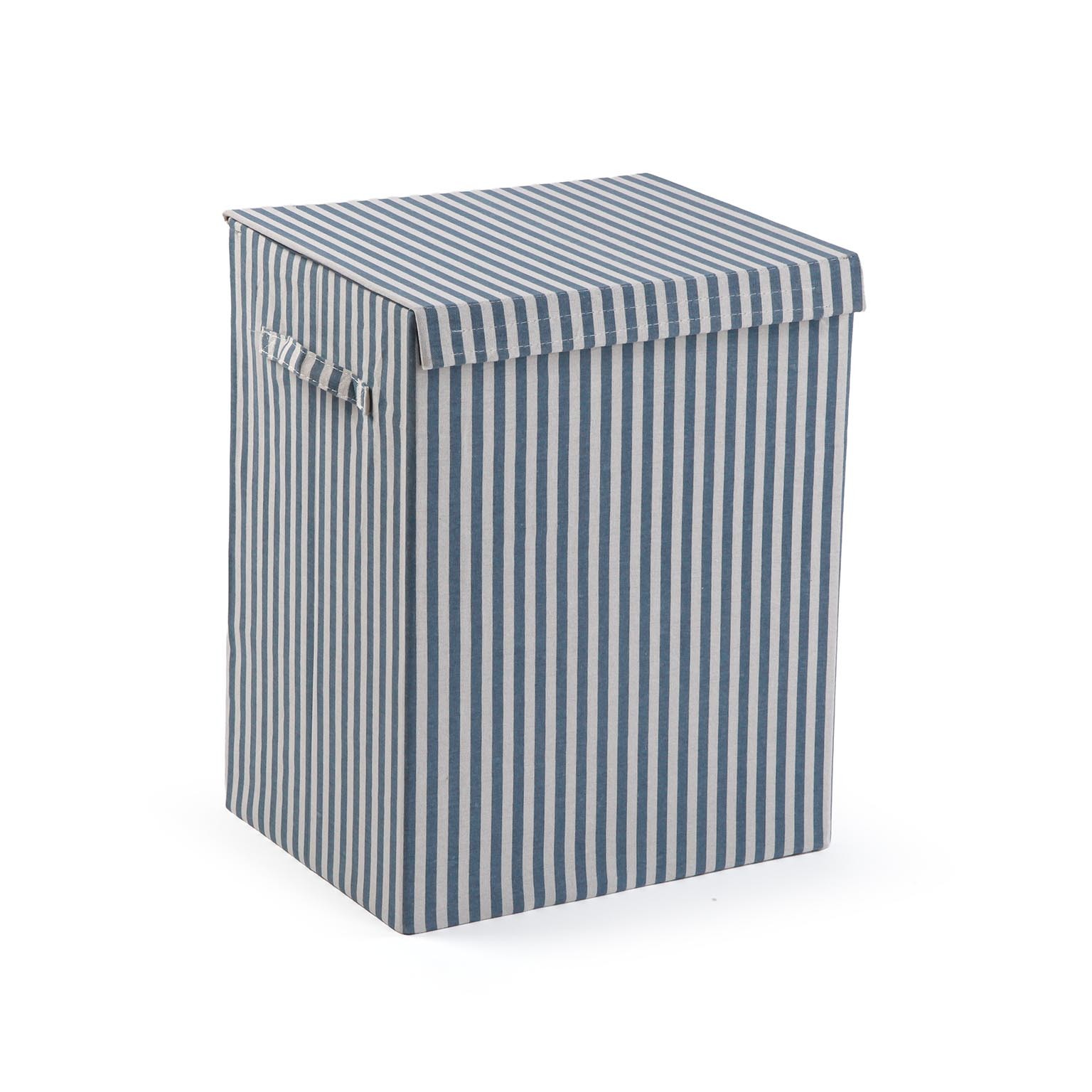 Crafted from a durable blend of 80% polyester and 20% cotton, this stylish hamper features a modern striped design in soothing blue and white tones.
