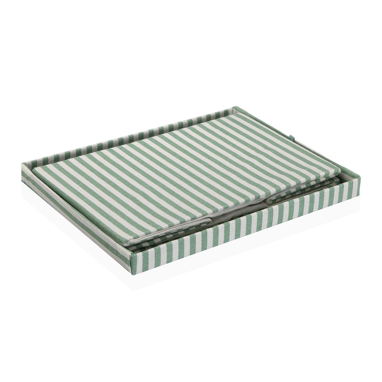 Introducing the Green Striped Rectangular Lidded Basket, a stylish and practical addition to bathroom spaces.