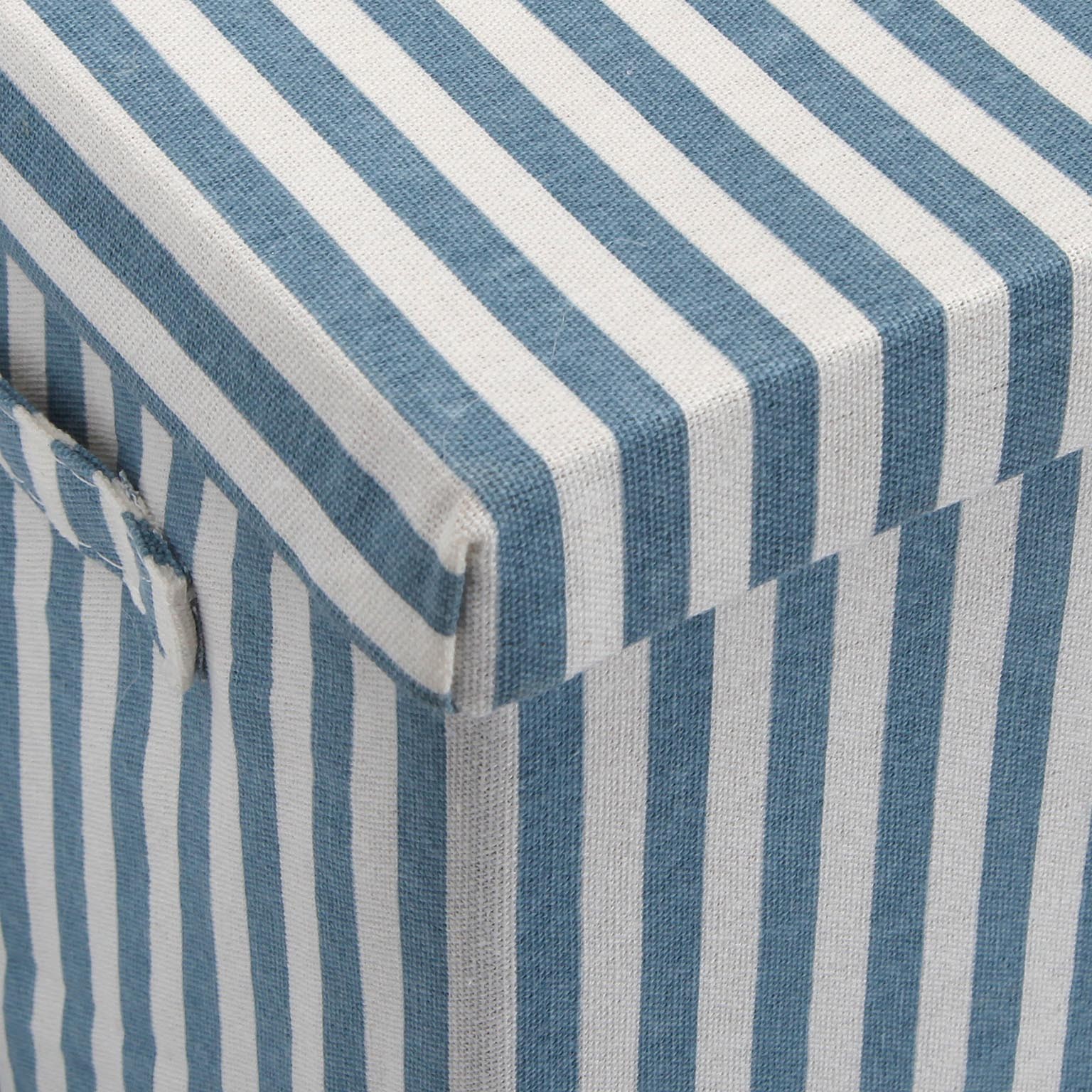 Enhance storage solutions with the Blue Striped Rectangular Lidded Basket, a stylish addition to any bathroom or laundry area.