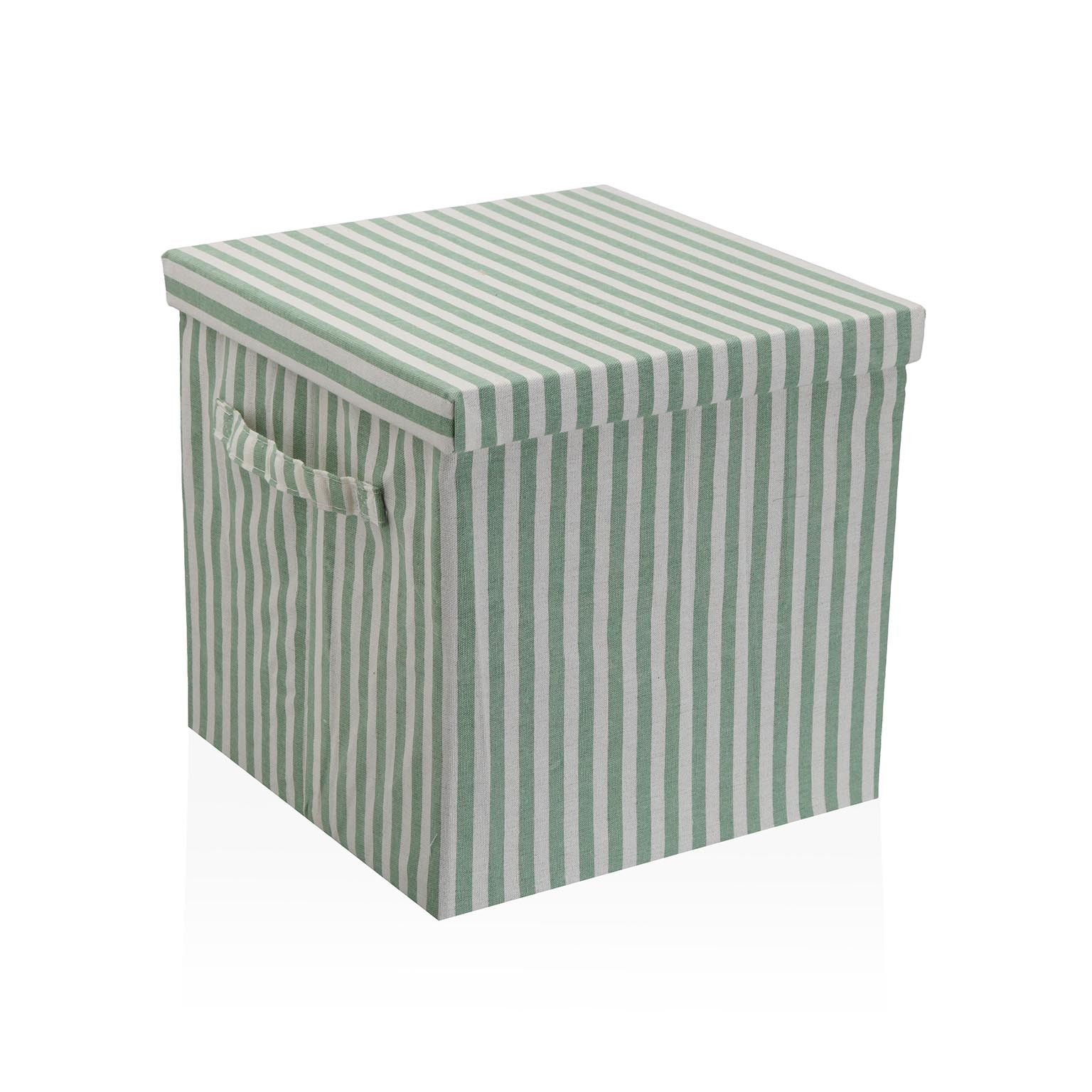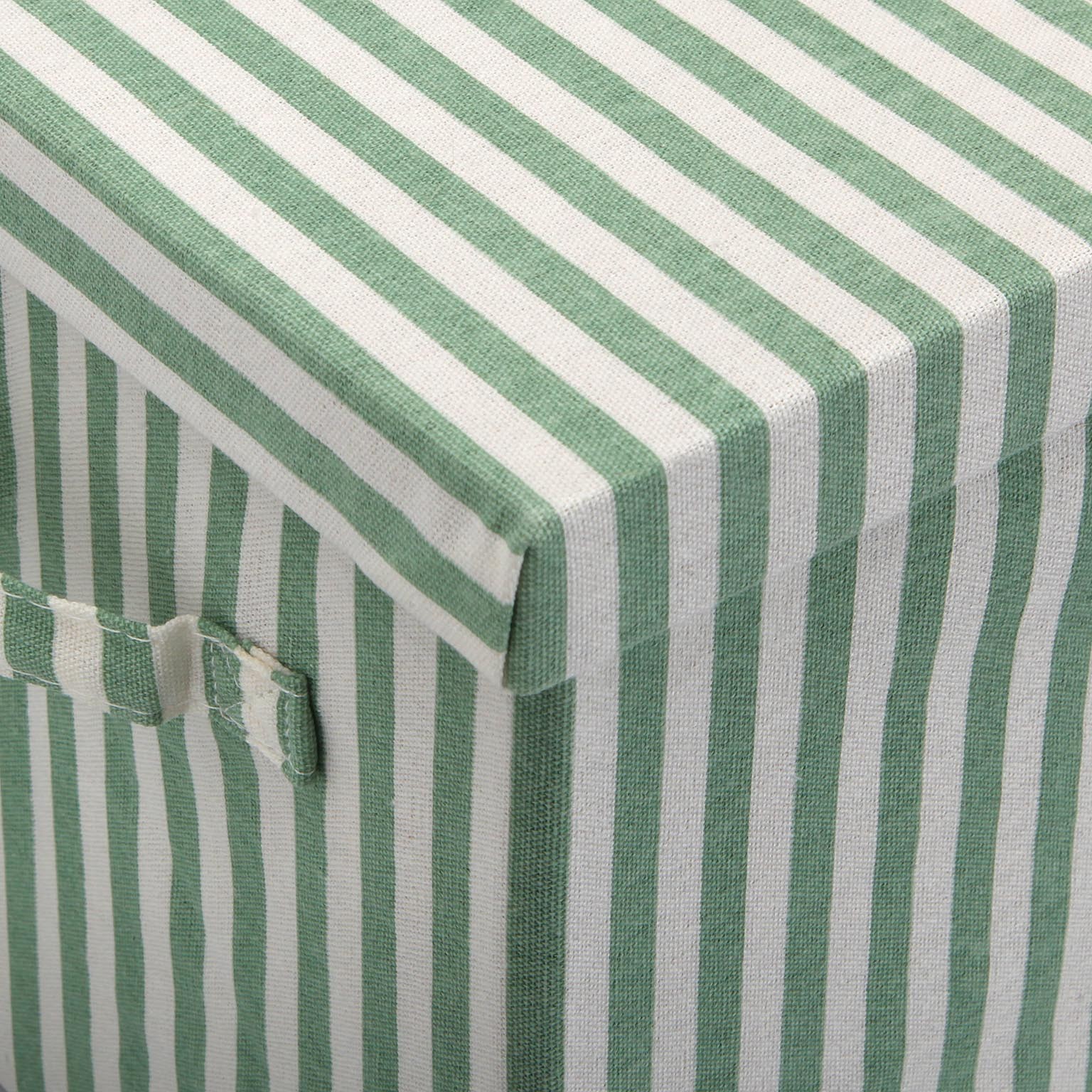Enhance organization in home spaces with the Green Striped Square Lidded Basket.
