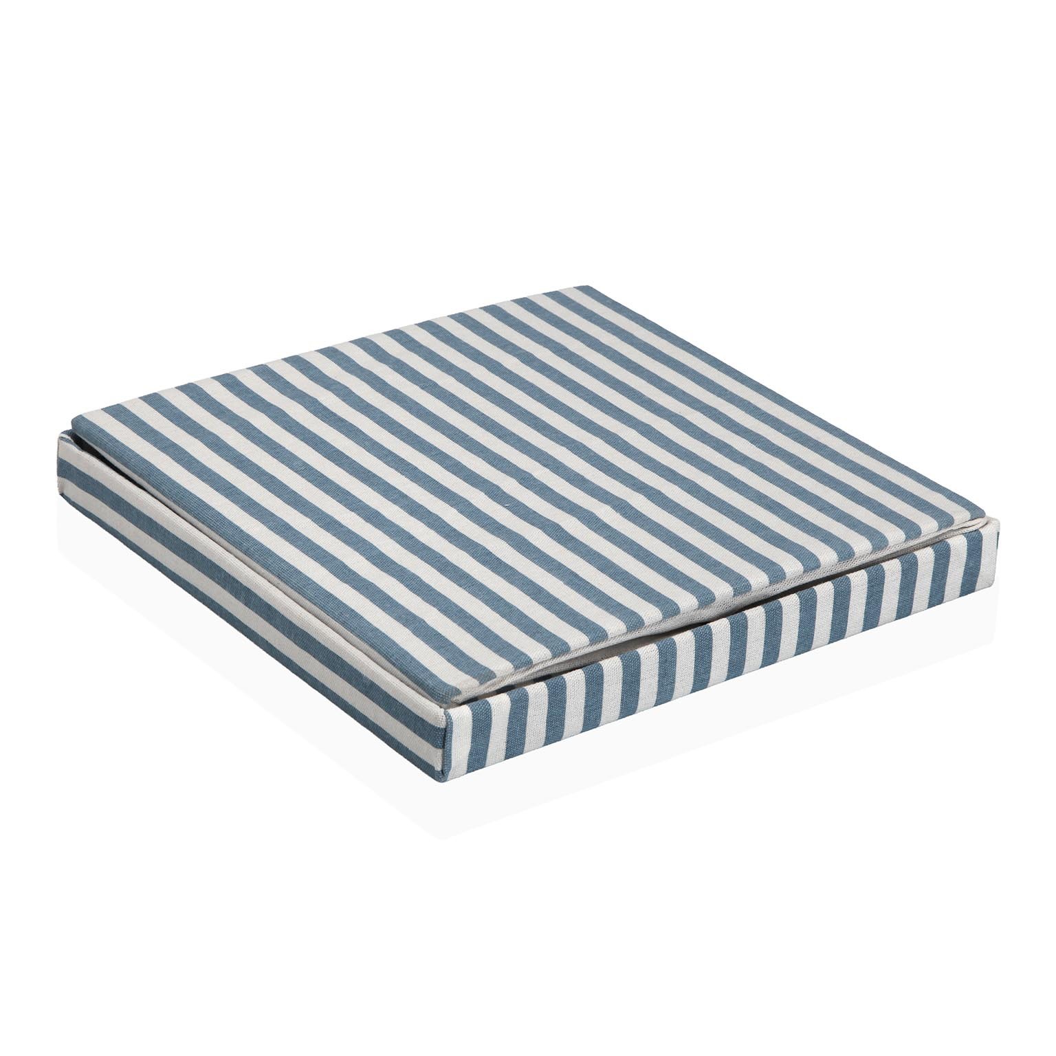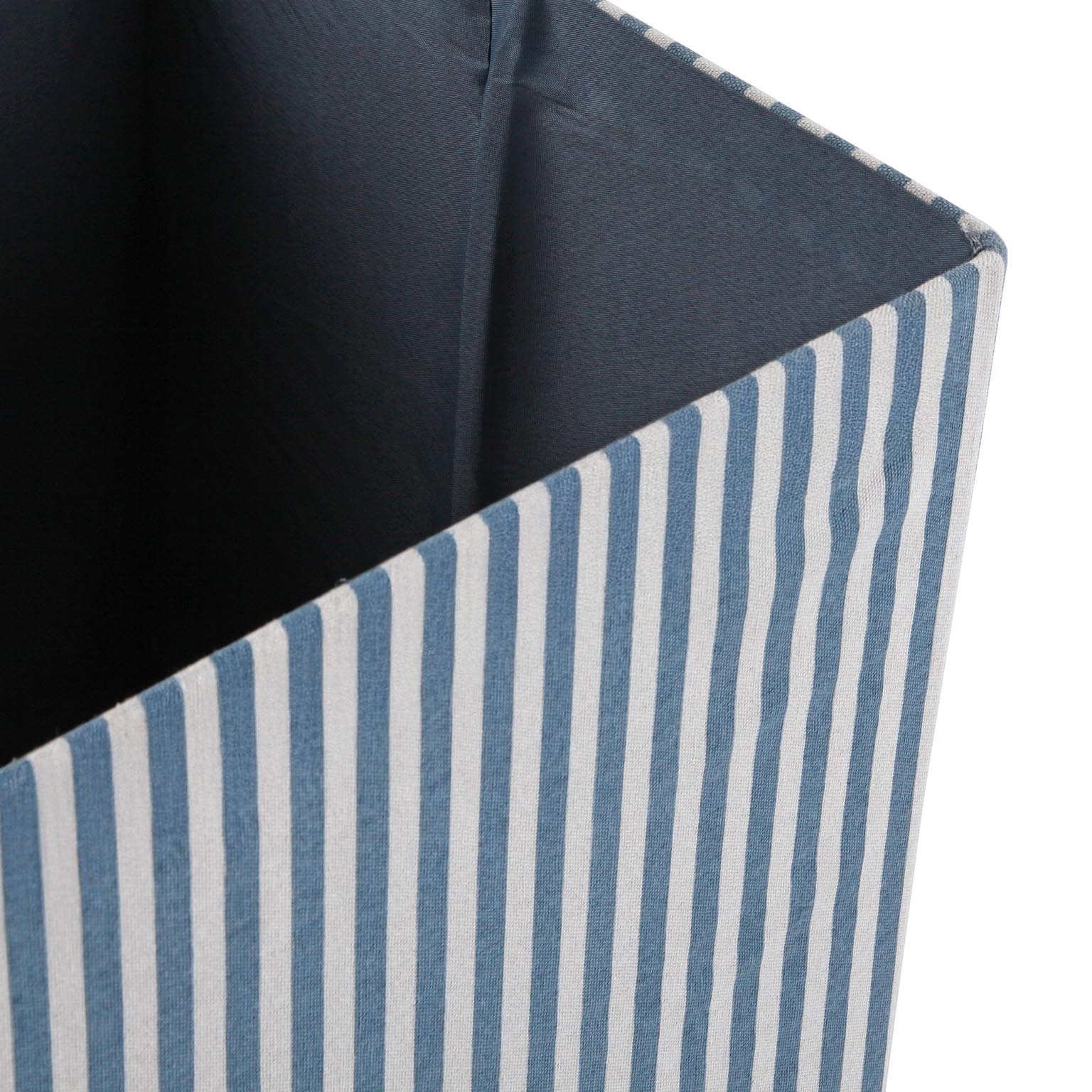 Introducing the Blue Striped Square Lidded Basket, a stylish and functional addition to any bathroom or laundry room.