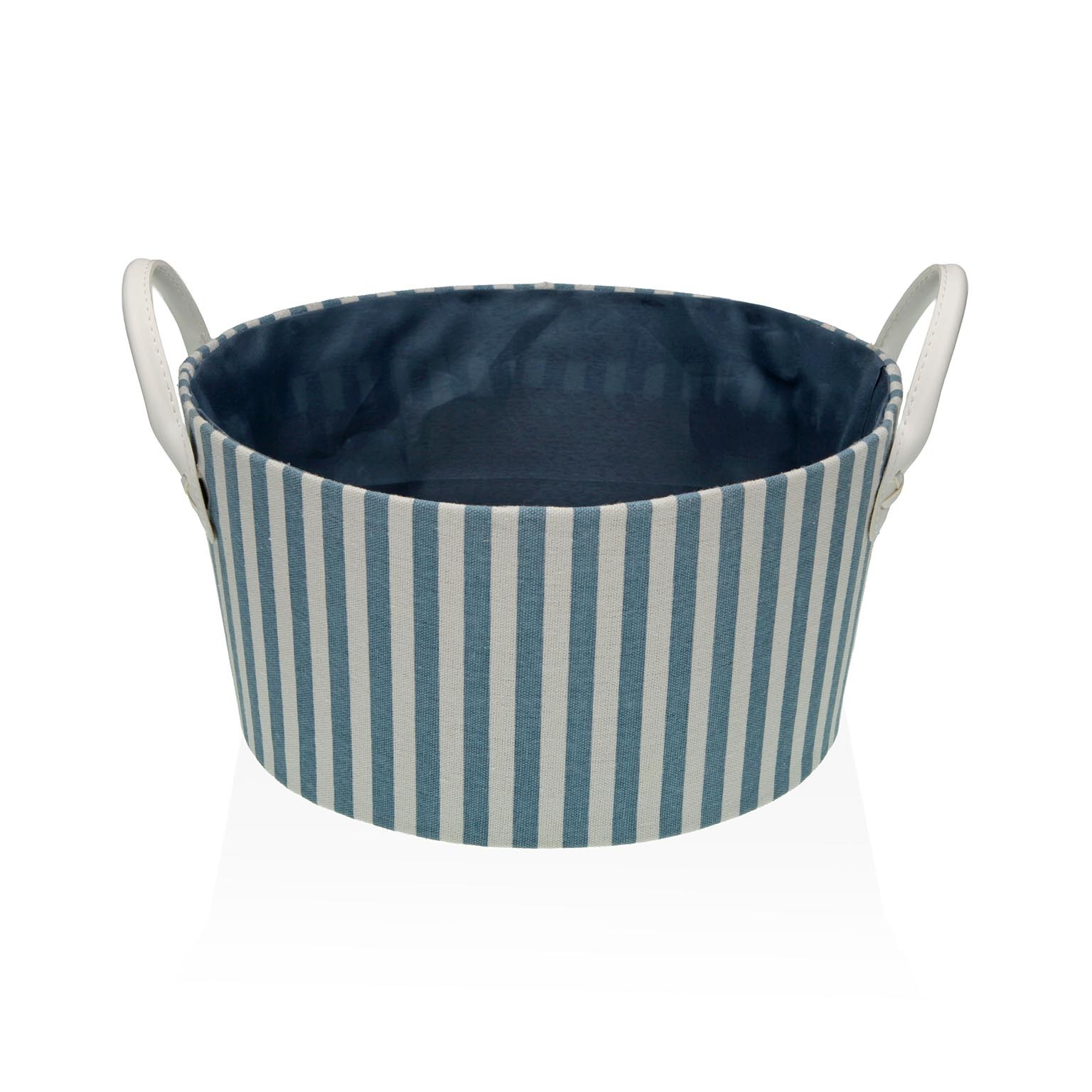 Enhance home spaces with the Blue Striped Round Basket, a versatile laundry hamper designed for functionality and style.