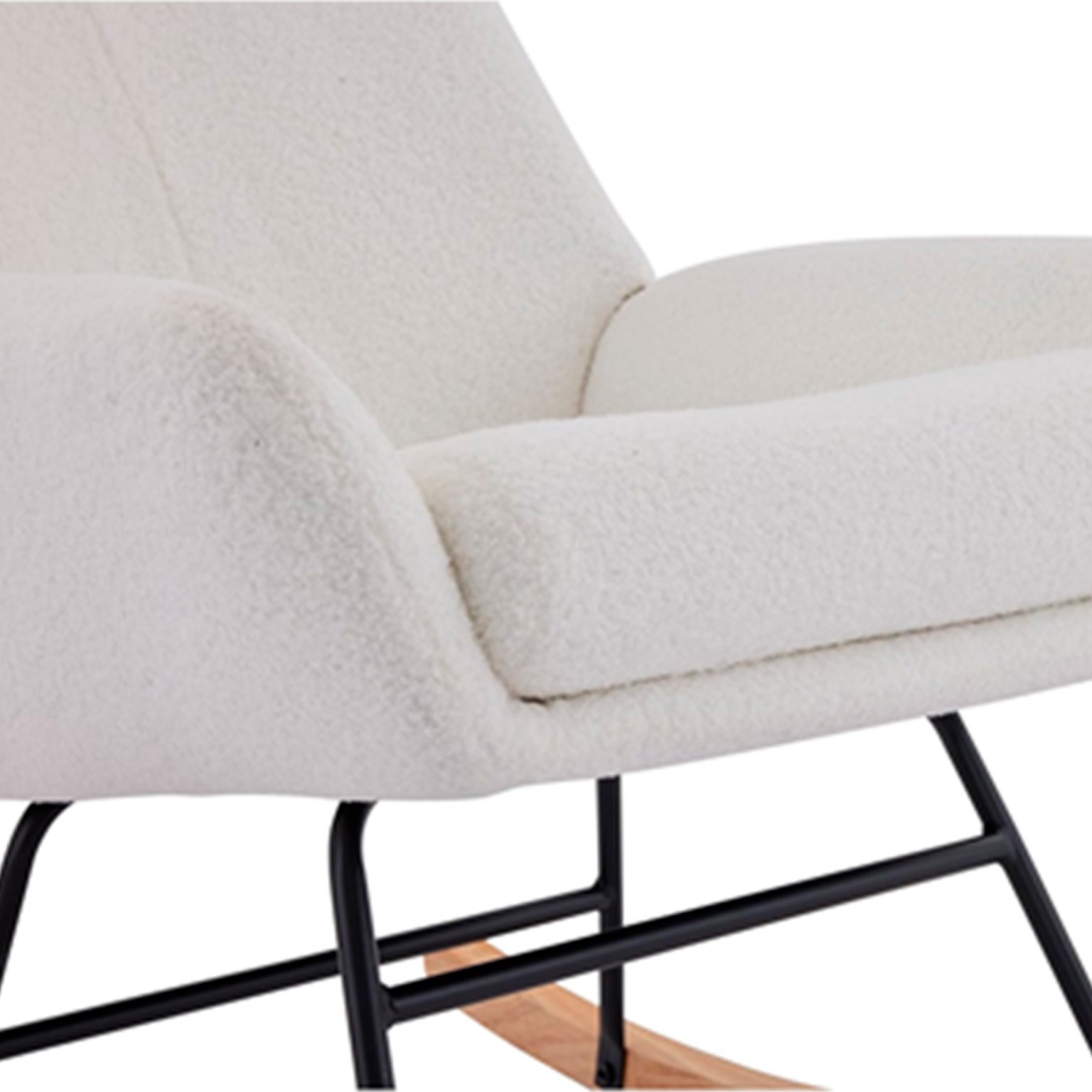 Crafted with a sturdy black metal frame and a light wood rocking base, this chair combines durability with contemporary design.