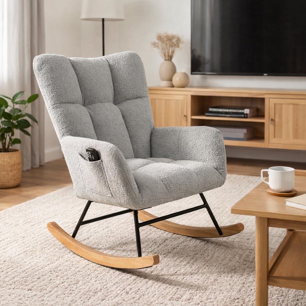 Introducing the Rocking Chair with Grey Armrests, a modern addition to any furnishing collection.