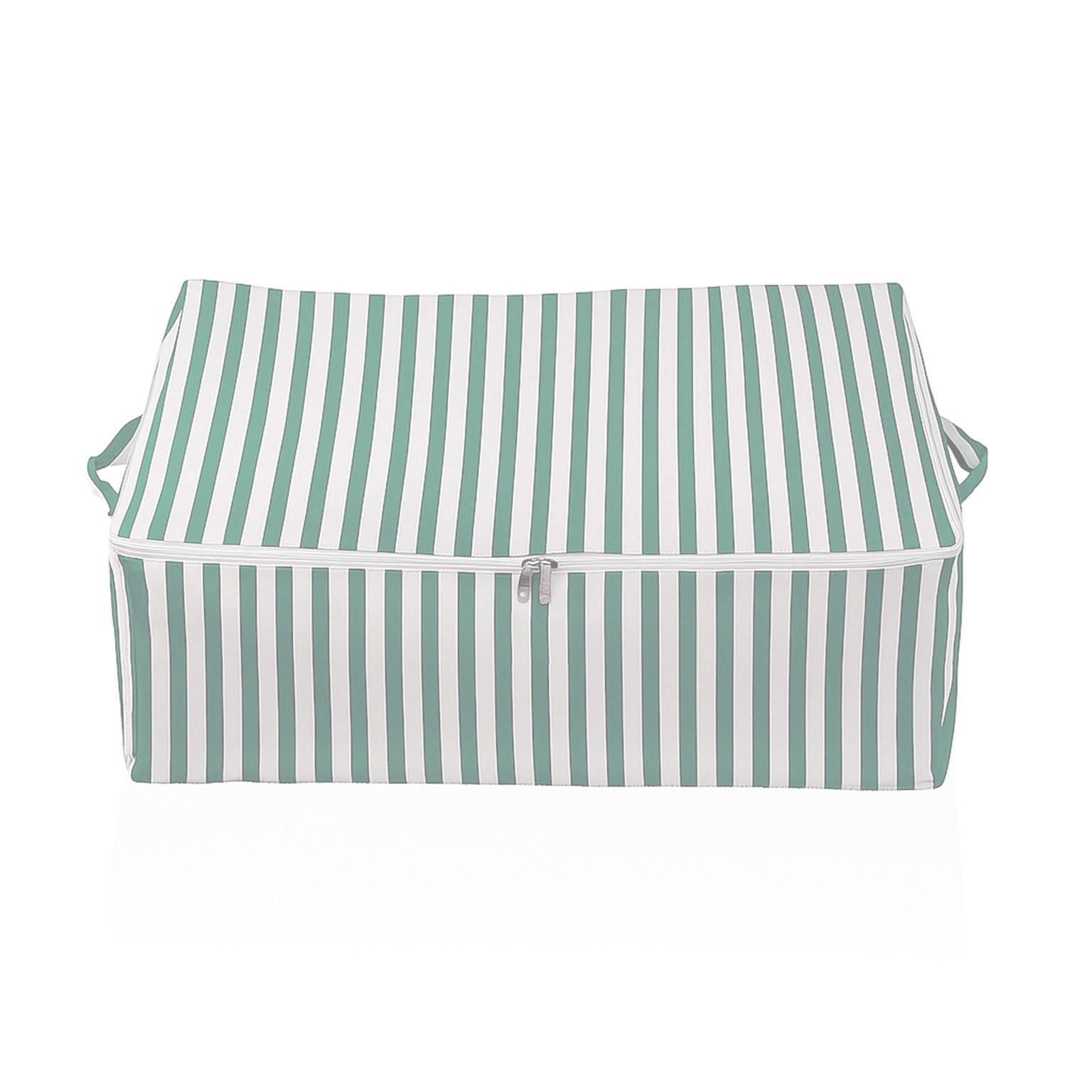 Crafted from a blend of cotton and polyester, this box features a contemporary light green and white striped pattern, adding a fresh touch to any bathroom or dressing area.