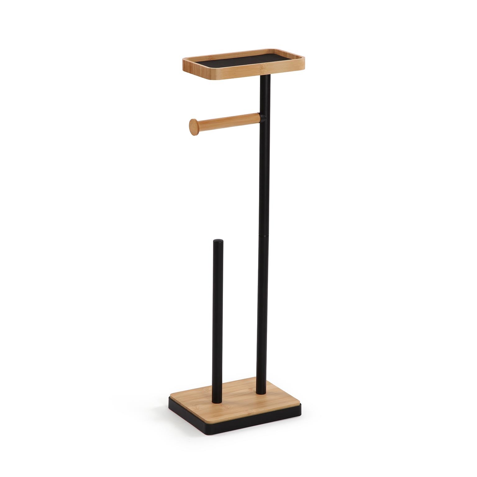 Enhance bathroom aesthetics with the black toilet roll holder, expertly crafted from bamboo, iron, and polypropylene.