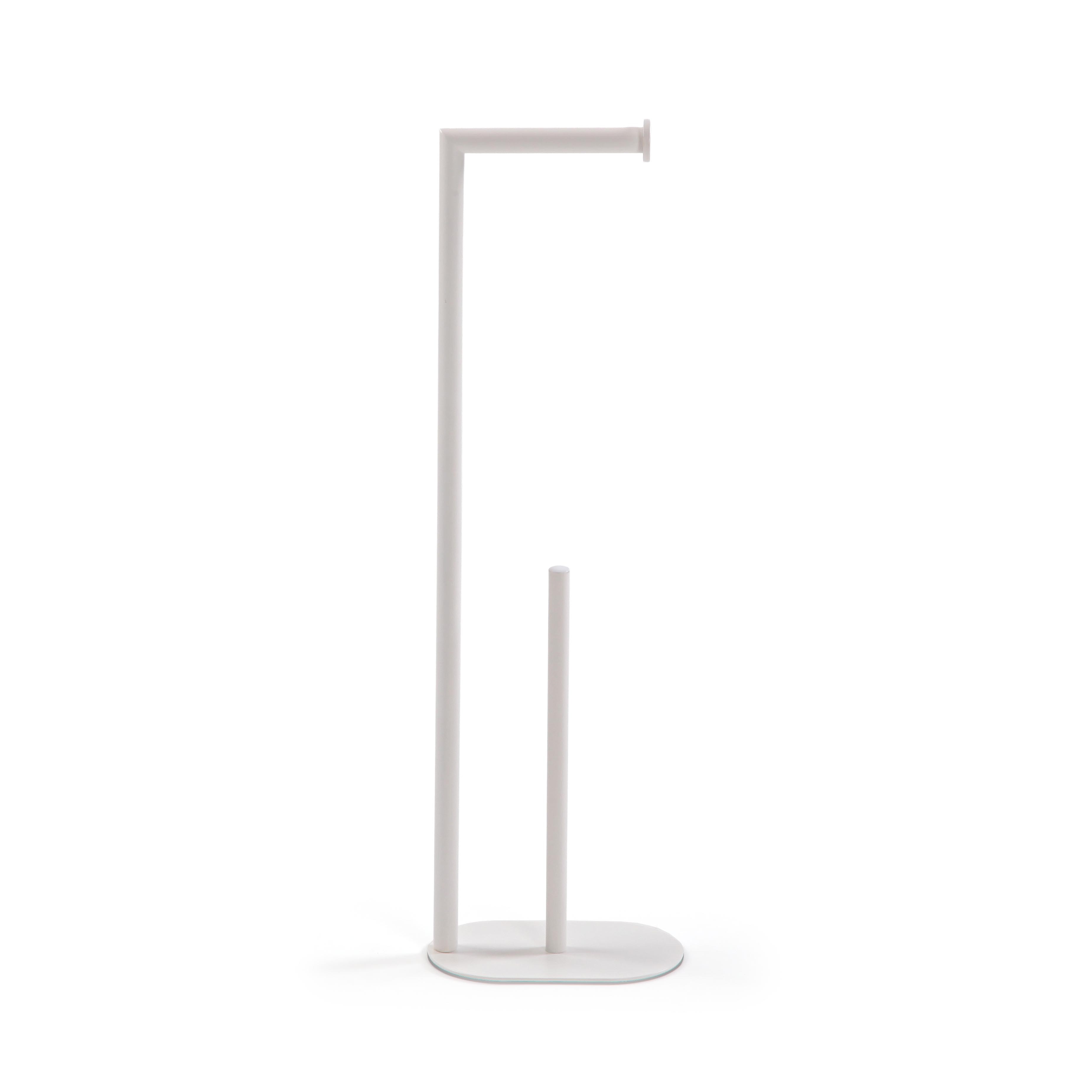 Enhance bathroom functionality with this sleek white toilet roll holder, crafted from durable iron with a moisture-resistant powder-coated finish.