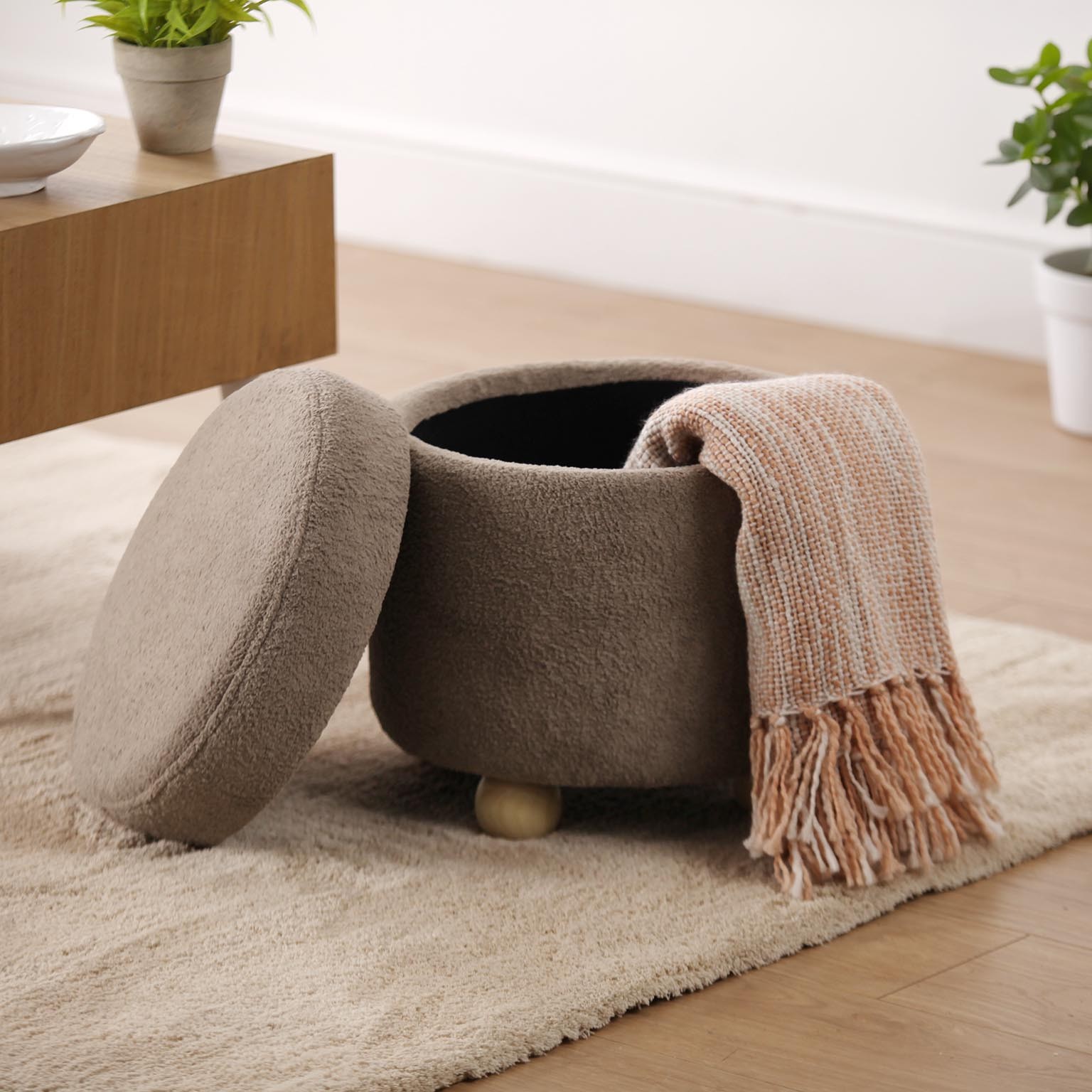 Introducing the light brown lira storage pouffe, a versatile addition to any furnishing collection.