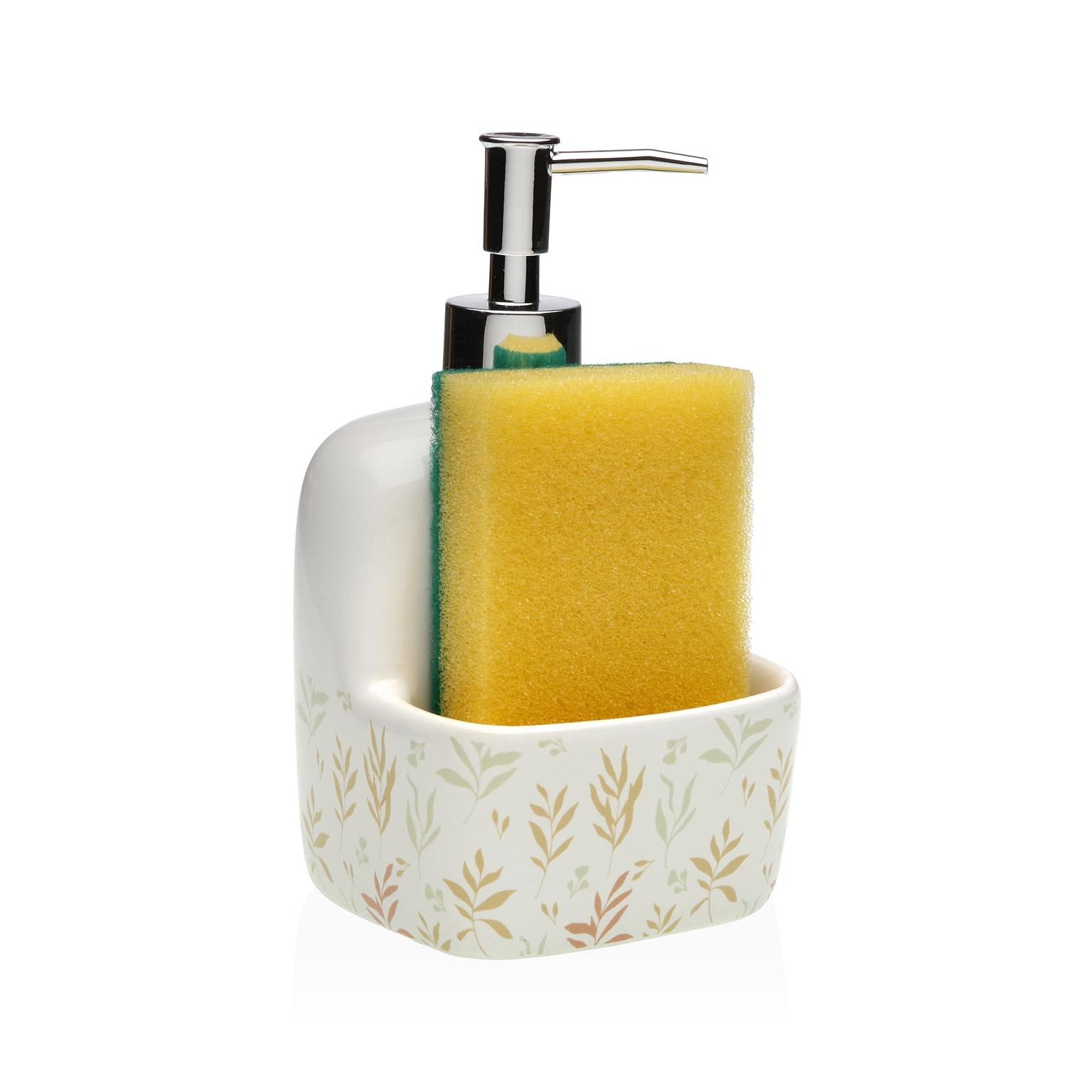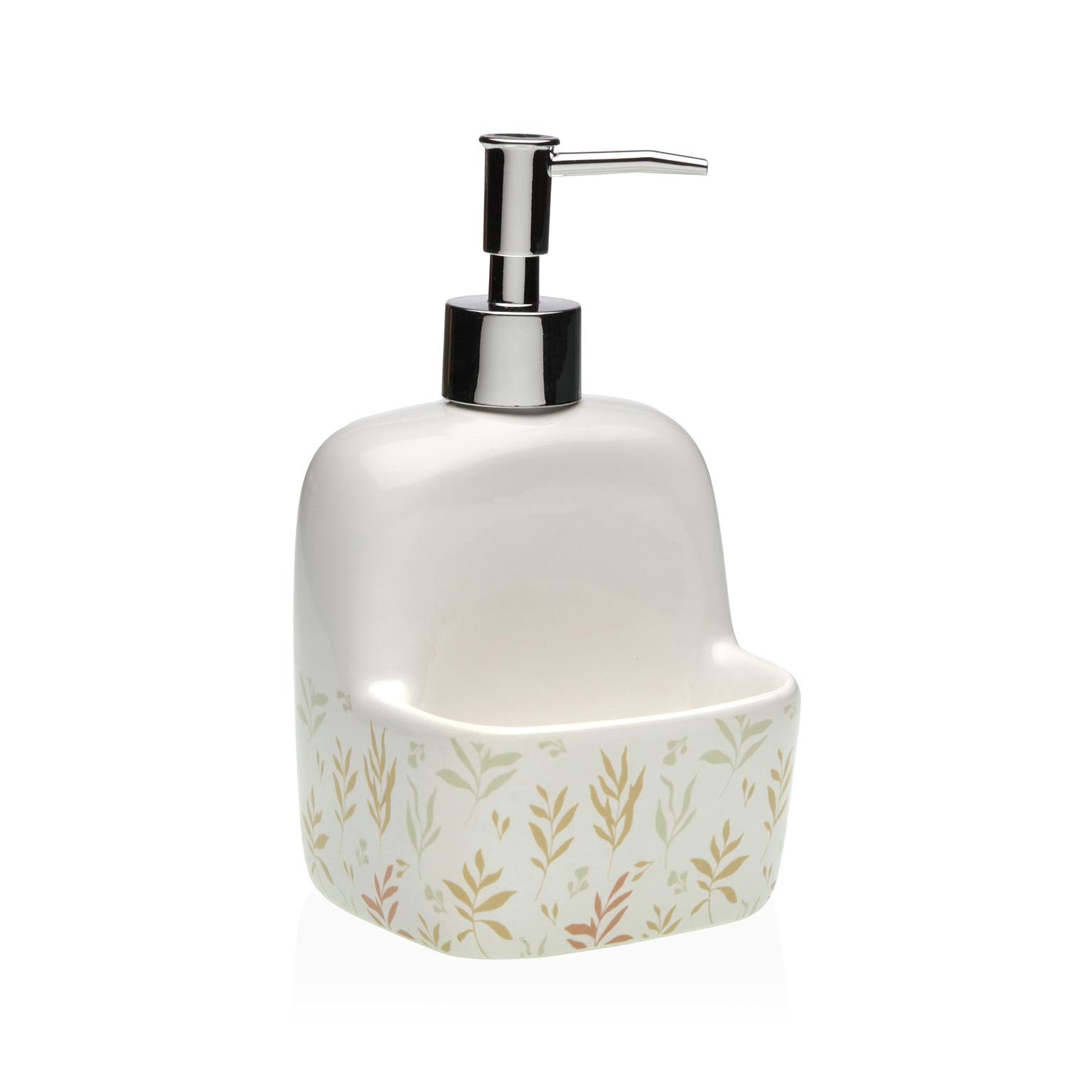 Standing at 17,8 cm tall with a width of 9,4 cm and a length of 10,5 cm, this dispenser features a durable ceramic body adorned with soft, muted decorative patterns.