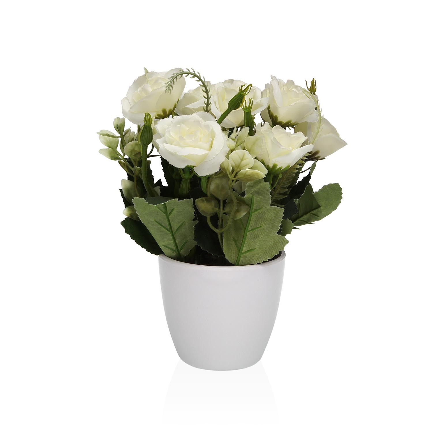 Enhance home spaces with the Decorative Pot featuring elegant white roses, standing at 18cm tall.
